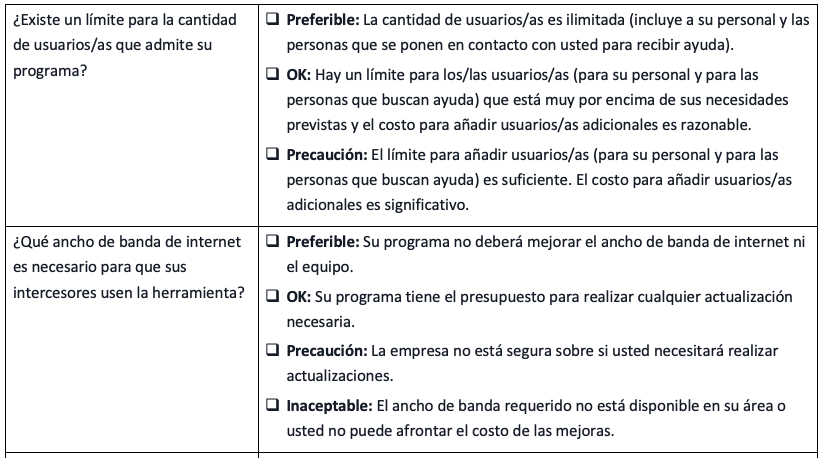 Este formulario es un complemento del recurso Seleccionar un Proveedor para Brindar Servicios Digitales y no tiene la intención de ser una herramienta independiente. Antes de utilizar esta herramienta, lea atentamente el contenido principal, que describe los conceptos clave y profundiza cada sección incluida en esta herramienta. Consulte también el Conjunto de Herramientas de Servicios Digitales completo para conocer información adicional acerca de la Evaluación de la Disposición para Brindar Servicios Digitales y las Mejores Prácticas para los Servicios Digitales. La Red de Seguridad también está disponible para brindar asistencia técnica, incluida la asistencia en la evaluación de la idoneidad de herramientas específicas para las necesidades de su programa.